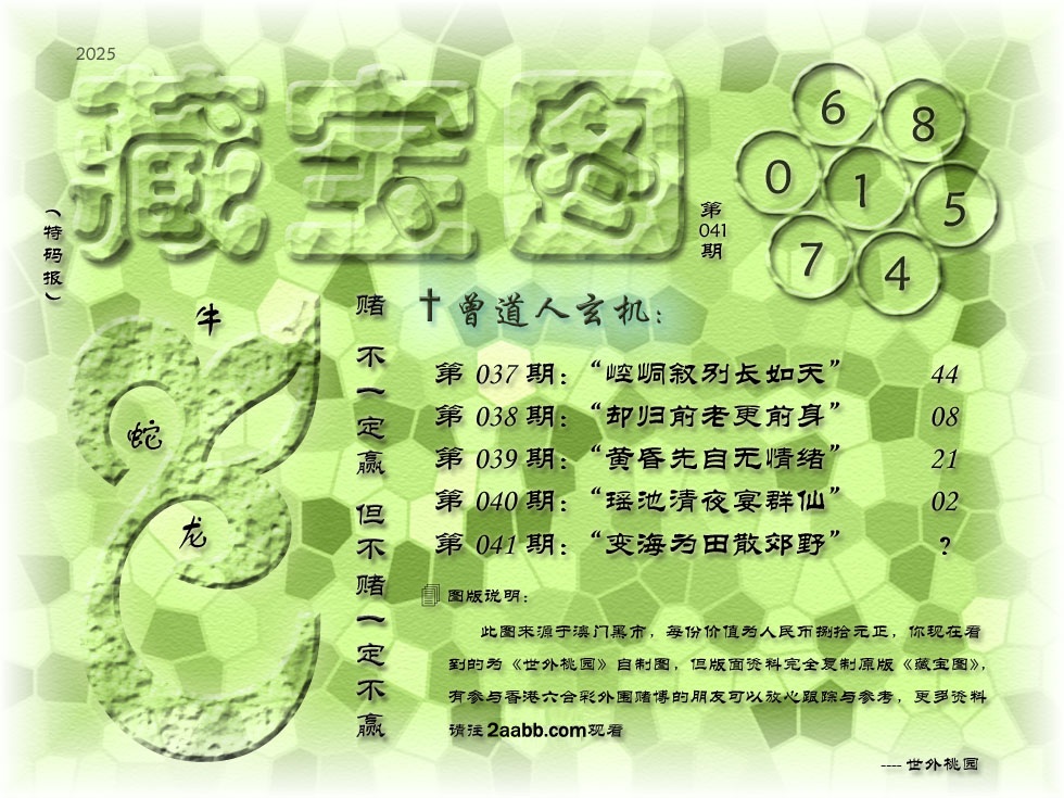 注意:041期开奖时间为